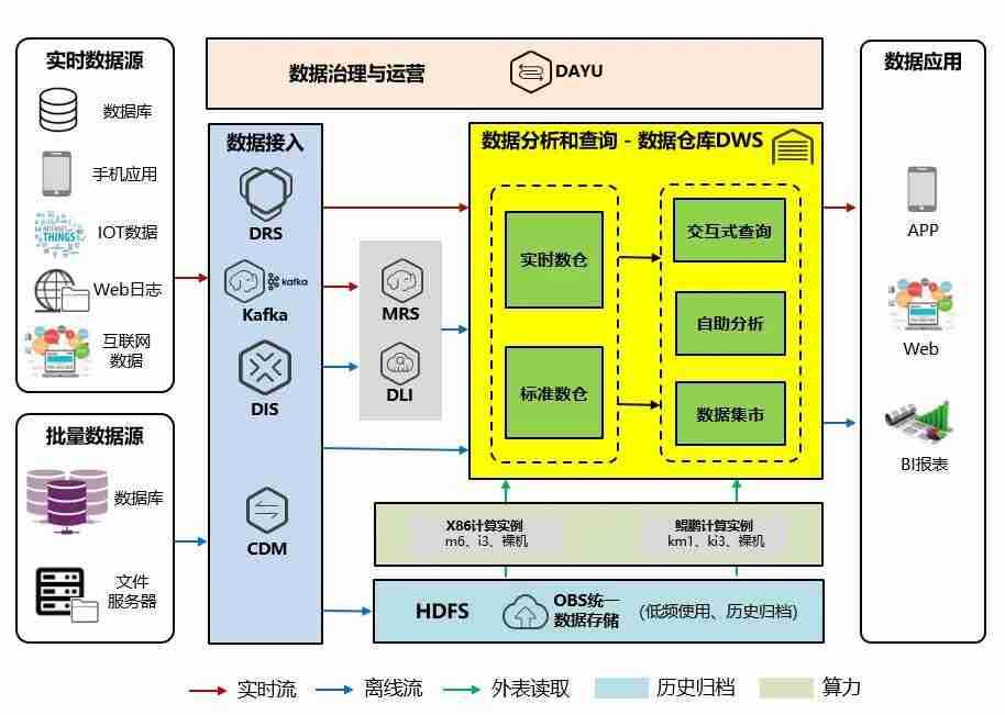 交通银行数据仓库(DWS)采用YSB鲲泰R722服务器作为数据底座,,采用MPP(Massive Parallel Processing)架构,,,支持行存储与列存储,,提供PB(Petabyte,,2的50次方字节)级别数据量的处理能力。。。。