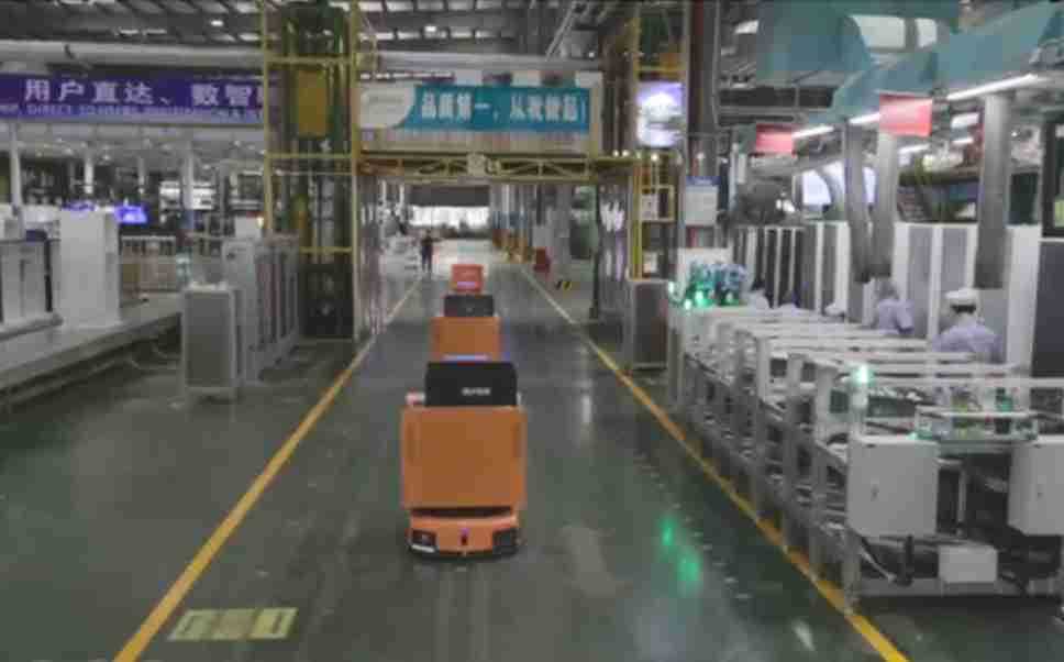 为车载冰箱物流配送打造的智能解决方案,,,包含产中物流通过潜伏举升AMR搬运至线边,,产后成品物流智能仓储,,流程包含产中物流智能齐套入库,,,,线边安灯叫料AMR智能配送至线边,,,成品入库、、出库,,,通过无人堆高车机器人,,,,智能仓储管理替代人工作业管理,,,,实现更高存储、、、更高效率、、更具柔性化的解决方案。。