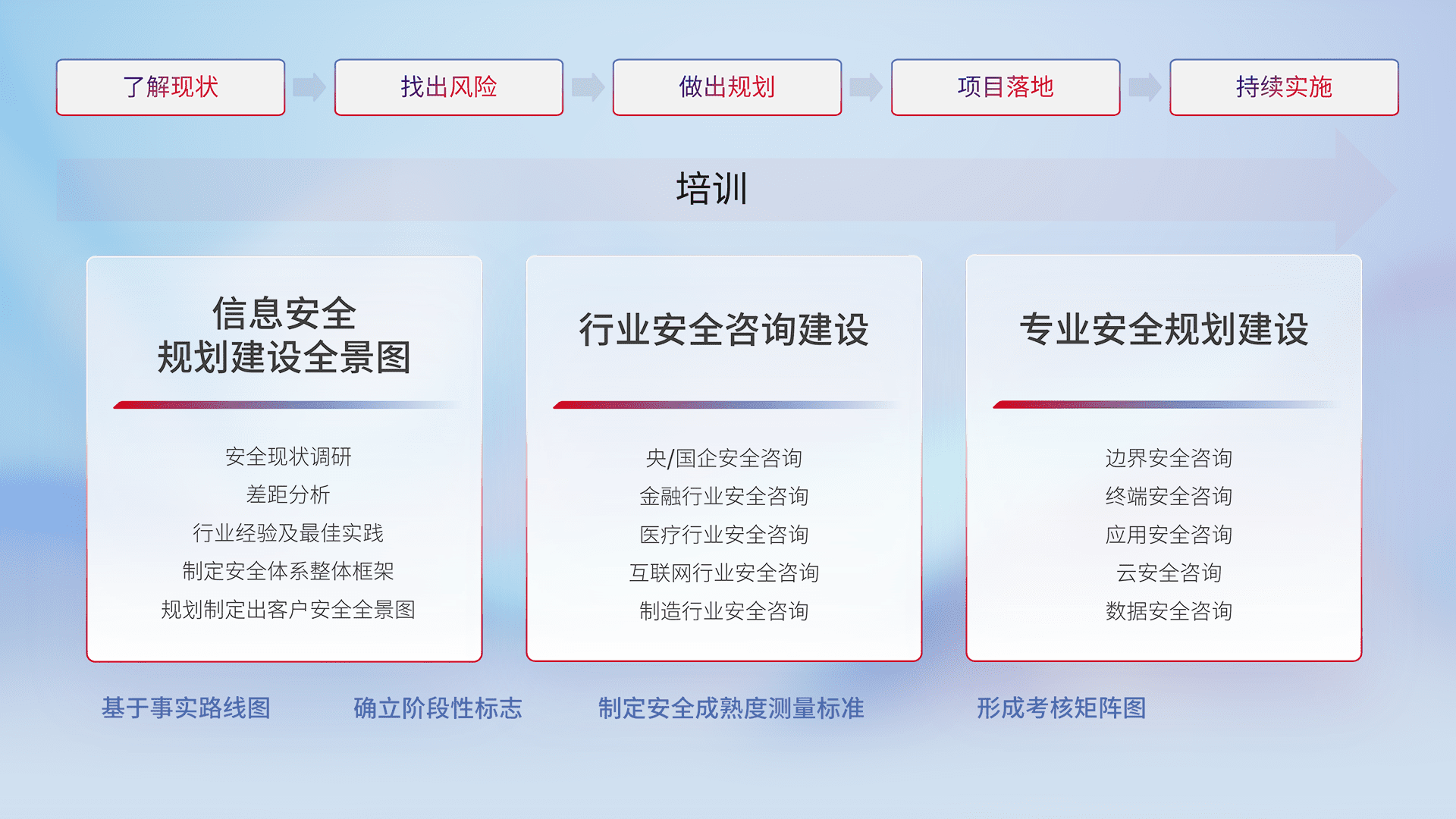 梳理客户信息安全现状调研、、、、差距分析结果,,,,结合行业先进经验及最佳实践,,,制订客户的信息安全管控体系总结架构,,最终形成一个完整的客户信息安全规划与建设的全景图。。。。